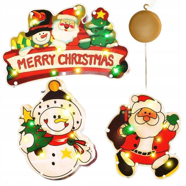 3x Karácsonyi Led Ablakdísz, Színes, Elemes (307548226)