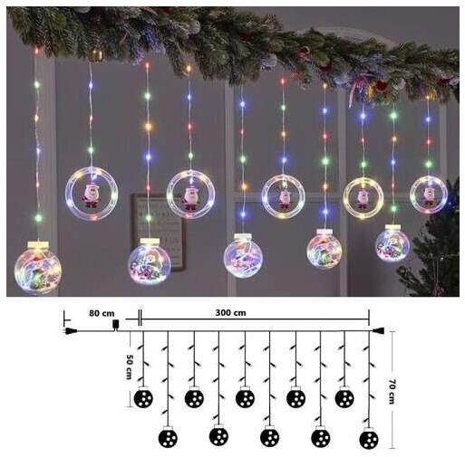 Led függöny, 5db gömb, 5 db gyűrű amiben 108db led van, fogyasztása 3,84W termék mérete: 300x700 cm vezeték hossza: 3 m kül-és beltéri /IP44/ függöny A ledek nem cserélhetőek! USB csatlakozós, 5V. Bármelyik régi USB / telefon/töltővel működik! 70 cm lelógás A képek illusztrációk, minimális eltérés lehetséges!