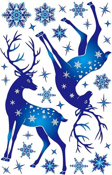 Karácsonyi Statikus Matricák Kék RÉNszarvasok Hópehely Felirat 30db (255399780)