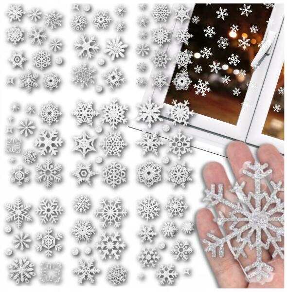 Lap szett x9 Karácsonyi matricák Hópelyhek csillámos ablak (Zestaw 9 Arkuszy Świątecznych Naklejek)ALLEGRO