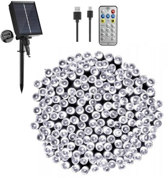 ProGarden 21, 6 m 480 LED-es Fényfüzér, Hybrid Tölthető-napelemes, Hideg Fehér, 8 Világítási mód, Időzíthető, Távvezérlős