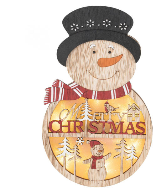 Somogyi Elektronic KLW 21 S ajtódísz, ablakdísz, fa, hóember forma, 4 db LED, lézervágott, kapcsolható (KLW-21-S)