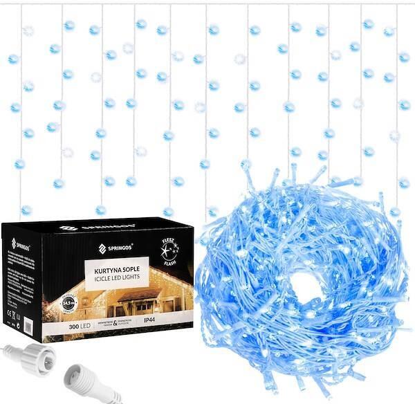 SPRINGOS Fényfüggöny 300 LEDes füzér, 12 m, kék