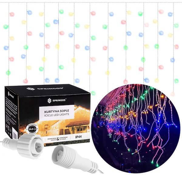 SPRINGOS Fényfüggöny - 500 LED Füzér, 20 m, Multikolor