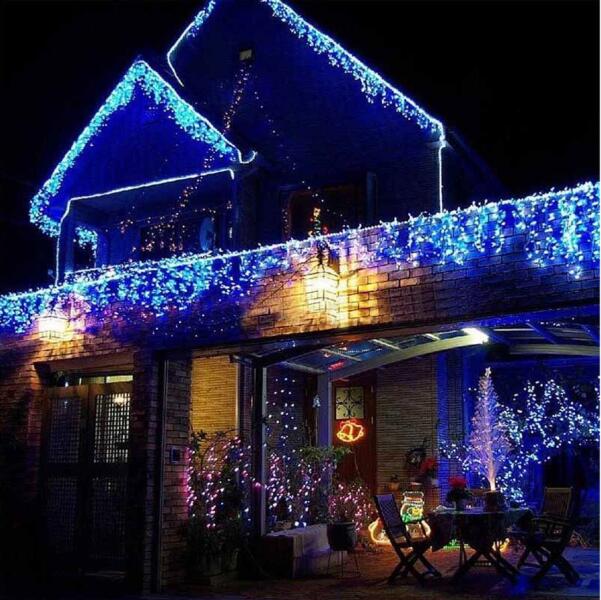 Sternhoff 300 LED-es Jégcsap Fényfüzér Beltéri és Kültéri Használatra, Hosszabbítható, Kék, 8 Világítási móddal, 8, 3 m
