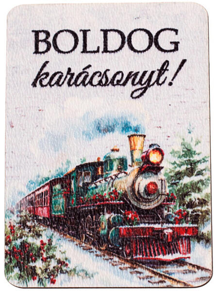 Valex Decor 4db. "Boldog karácsonyt! " feliratos, gőzmozdonyos fa tábla 7 x 5 cm (GV04-922)
