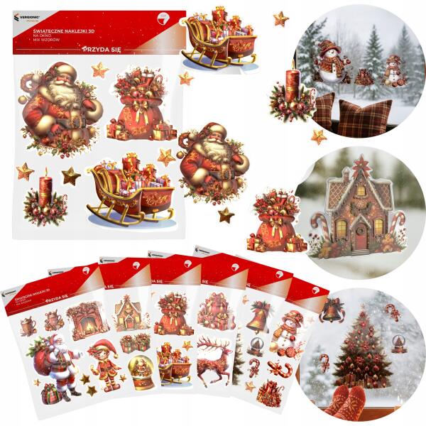 Vergionic 3D karácsonyi matricák ablakra nagy lap mix karácsony Vergionic (8234)